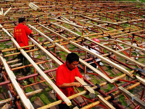 2008中國湖南國際旅游節(jié)已經(jīng)進(jìn)入倒計(jì)時(shí),作為本次活動(dòng)重頭戲的開幕式演出節(jié)目正在進(jìn)行緊張的排練,而備受關(guān)注的開幕式舞臺(tái)工程到底建設(shè)進(jìn)度如何?8月13日,據(jù)承建單位張家界喜洋洋文化傳播有限公司工作人員介紹,開幕式舞臺(tái)工程已完成1/3,現(xiàn)正進(jìn)行第二表演區(qū)的鋼管搭建和木板鋪設(shè),其它各項(xiàng)工程進(jìn)展順利,能在8月25日如期接受組委會(huì)驗(yàn)收。