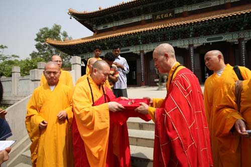 中華寺懷善方丈贈(zèng)與天門山寺懷梵方丈珍貴舍利