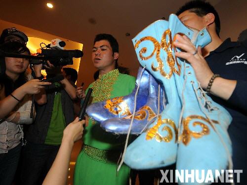 4月24日,新疆“達(dá)瓦孜”傳人賽買(mǎi)提·艾山在新聞發(fā)布會(huì)上接受采訪。當(dāng)日,賽買(mǎi)提·艾山在新聞發(fā)布會(huì)上宣布,他將于25日在張家界天門(mén)山景區(qū)再次進(jìn)行高空大斜度走鋼絲極限挑戰(zhàn)。今年24歲的賽買(mǎi)提·艾山是新疆“達(dá)瓦孜”第七代傳人,已經(jīng)創(chuàng)造了高空鋼絲倒立時(shí)間最長(zhǎng)、倒走距離最長(zhǎng)以及坡度最陡三項(xiàng)吉尼斯世界紀(jì)錄。 新華社記者龍弘濤攝