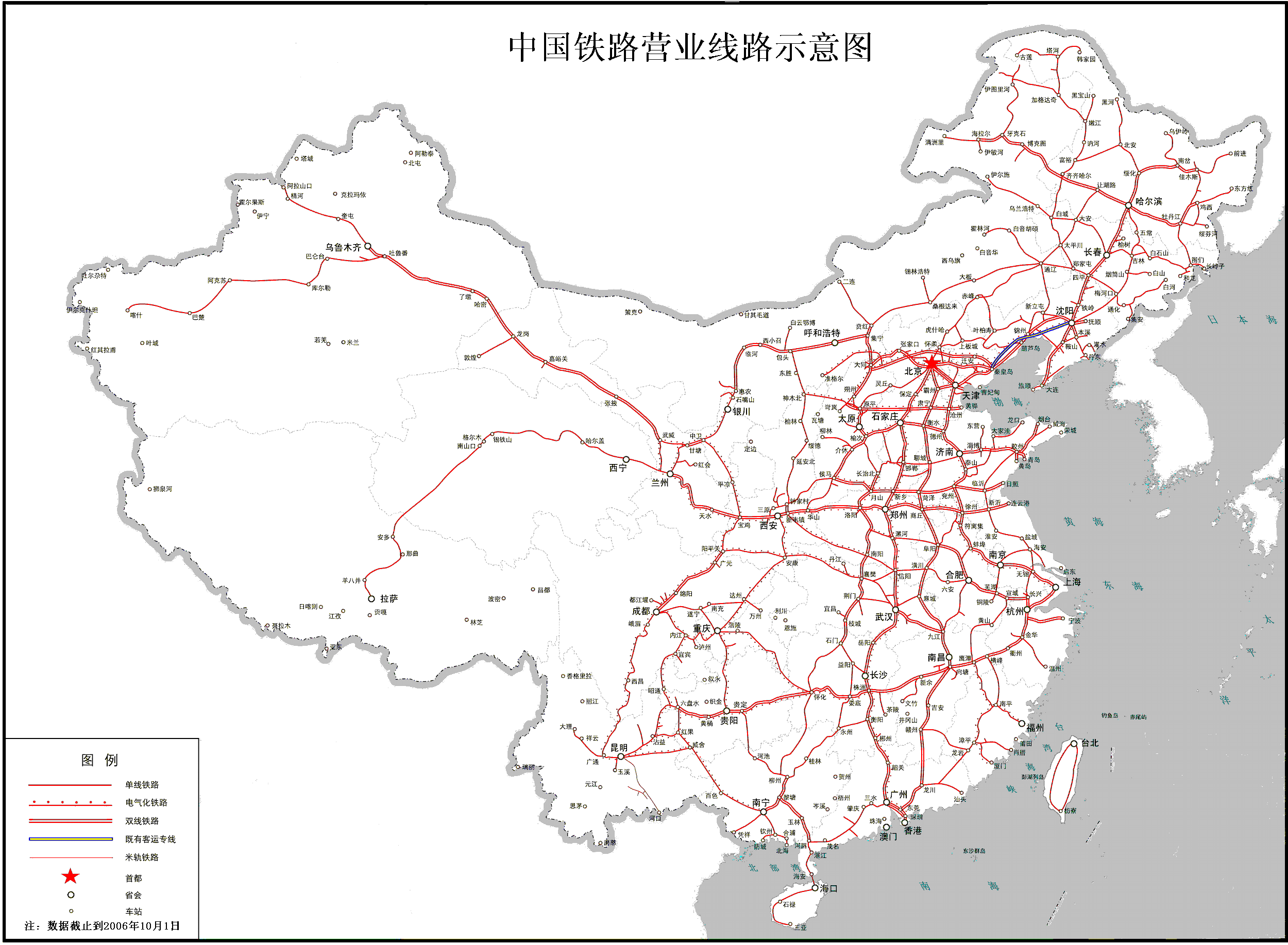 最新中國鐵路營業(yè)線路示意圖