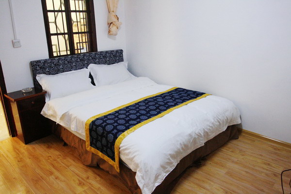 對(duì)了,驢友大廳還準(zhǔn)備了臺(tái)電視,晚上大家可一起欣賞節(jié)目,今年的足球世界杯可一起為喜歡的球隊(duì)邊喝彩邊喝酒,還準(zhǔn)備了幾張小木桌子及若干小木椅子,白天可以搬在屋外院子中邊曬太陽(yáng)邊喝茶聊天或打牌,晚上可邊欣賞星星邊吃西瓜。 房間內(nèi)除了床上用品是準(zhǔn)四星標(biāo)準(zhǔn)配置外,床尾單是按土家印花布定制的,有民俗特色,電視、獨(dú)立衛(wèi)生間、飲水機(jī)等齊全,1.2米的床,淡黃色溫馨墻紙配杉木地板,墻上配原木相框及土家印花或銀飾配件,還在床頭柜上留個(gè)小小的厚厚的本子,記錄一路下來(lái)住在這個(gè)房間自助游客的故事。 房間的命名,除了用數(shù)字命名外,也配以景點(diǎn)名字,如,101號(hào)房也叫跳魚(yú)潭,102號(hào)房也叫紫草潭,103號(hào)房叫雙龜探溪等等,相應(yīng)房間內(nèi)掛上一副其景點(diǎn)的美圖,一樓上二樓那片大大的墻,為照片墻,游客的照片,我們的照片,旅館的照片,圍繞的整片墻,過(guò)道上及兩側(cè),掛上長(zhǎng)長(zhǎng)的大紅燈籠,掌柜的每天和來(lái)自各地不同的游客們交流,傳授他們張家界和鳳凰自助游的獨(dú)門(mén)秘籍,晚上一起吃吃喝喝,說(shuō)說(shuō)笑笑。