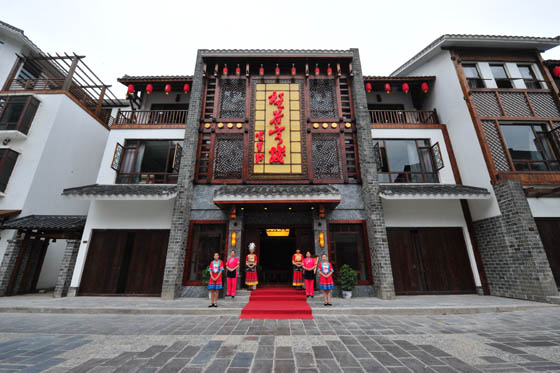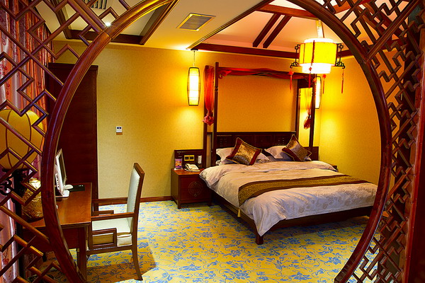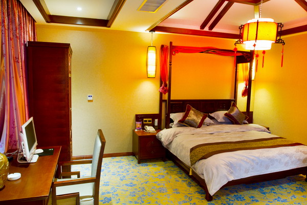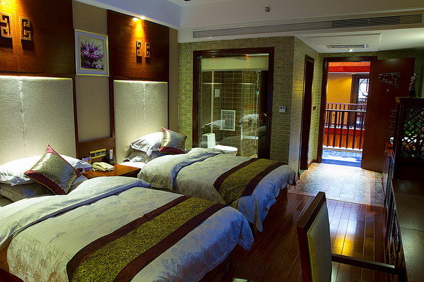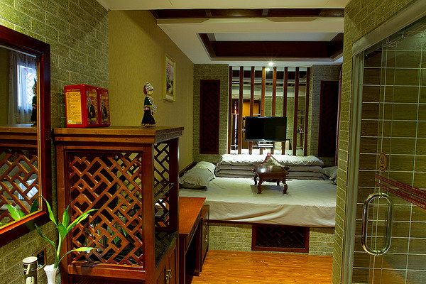 客棧共設(shè)有商務(wù)套房、復(fù)式閣樓、北方炕房、土家新娘床、豪華雙標(biāo)間、豪華大床房等不同格局房型共68間。