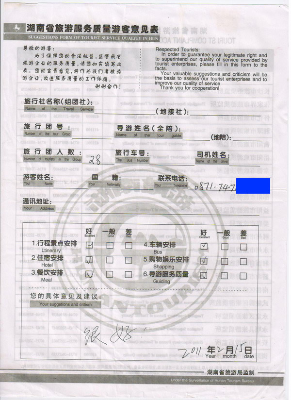 云南昆明一行28人旅游質(zhì)量回饋:很好!