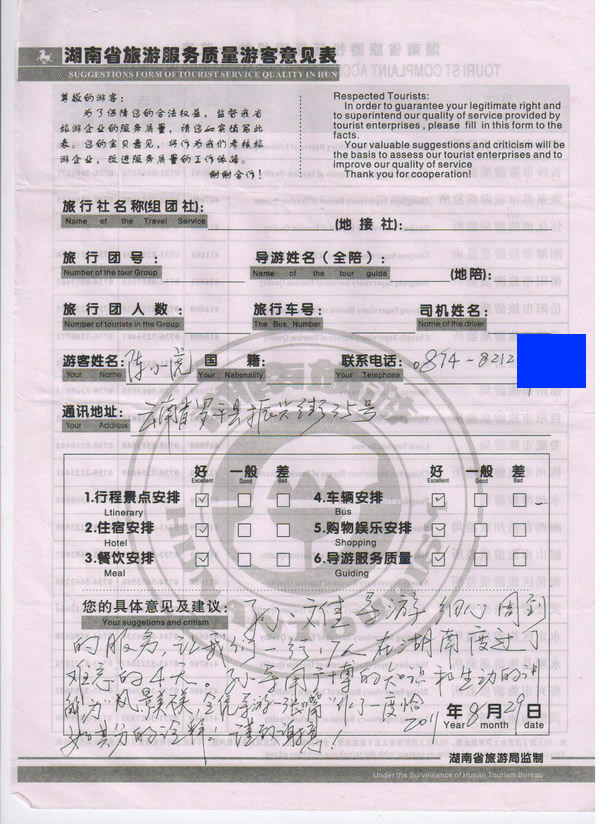 云南陳先生一行17人旅游質(zhì)量回饋