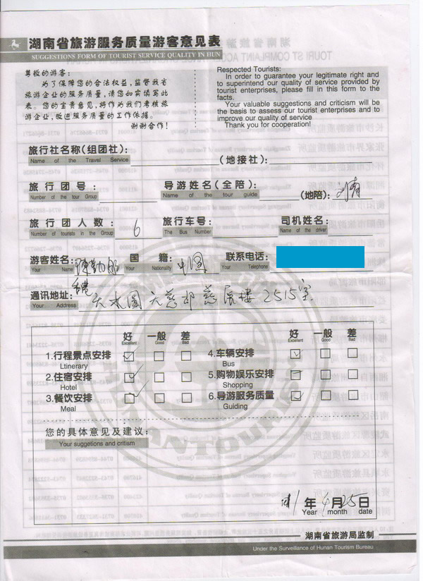香港陳女士一行6人旅游質(zhì)量回饋