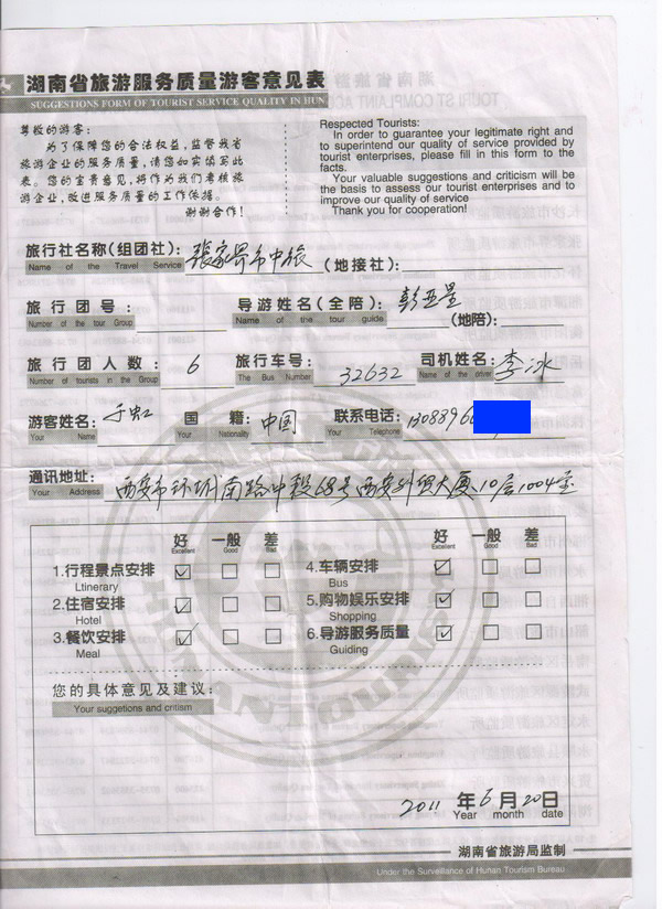 山西于小姐一行6人旅游質(zhì)量回饋: