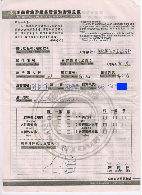 馬來(lái)西亞鐘小姐一行6人旅游質(zhì)量回饋: