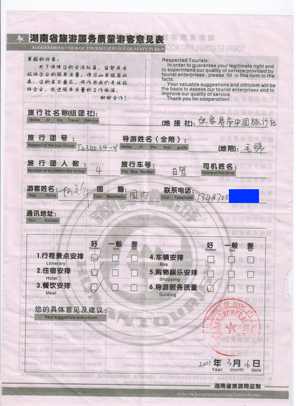 湖北何先生一行4人旅游質(zhì)量回饋