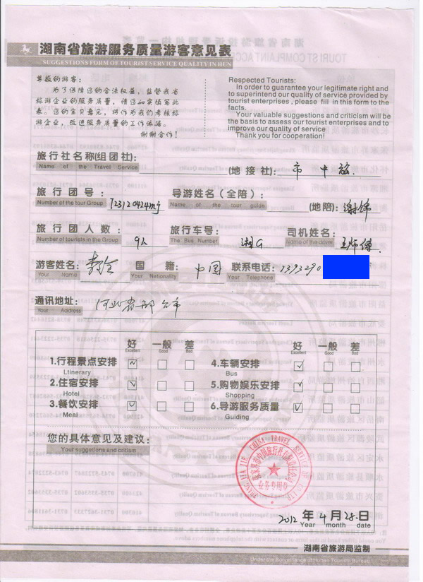 河北李先生一行9人旅游質量回饋