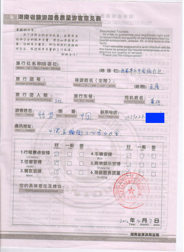 香港李女士一行7人旅游質(zhì)量回饋