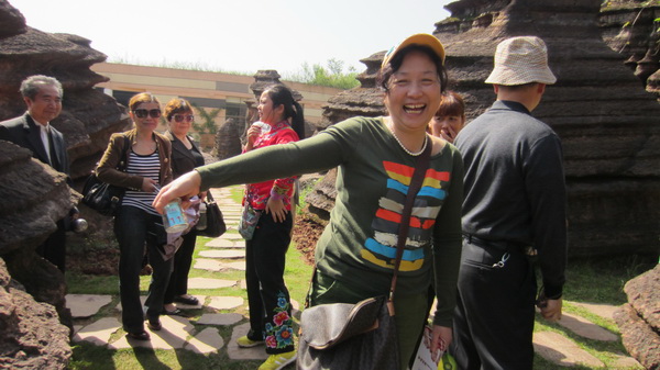 “爸爸,我也要”一位小孩拉著爸爸的衣角羨慕的說(shuō)到,“好,你和爸爸一起找,好不好?”“好!”父子倆便開(kāi)始了“尋寶之旅”,“兒子,來(lái),看這是什么?”“是藏寶瓶,爸爸找到了!闭麄(gè)現(xiàn)場(chǎng)都被歡樂(lè)、開(kāi)心充斥著。當(dāng)游客拿著藏寶瓶在出口處兌換禮品時(shí),更是樂(lè)開(kāi)了花。一位韓國(guó)游客很是具有“尋寶”天賦,竟然尋得了10個(gè)藏寶瓶,當(dāng)她拿著10份驚喜禮品時(shí),美麗的笑容在紅石的映襯下顯得更加燦爛。