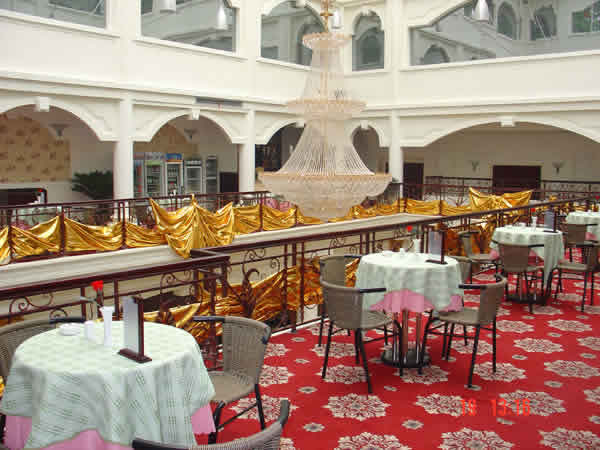 新輝國際酒店位于湖南省鳳凰古城建設(shè)路,總建筑面積5000平方米,總投資1200萬元人民幣,酒店樓層高8層。是一家按國家旅游涉外標(biāo)準(zhǔn)設(shè)計的高標(biāo)準(zhǔn)酒店(準(zhǔn)四星)。酒店擁有豪華套房8間,豪華雙標(biāo)73間,單間6間,三人間2間?赏瑫r容納300人進餐,娛樂、休閑場所齊備。酒店一樓設(shè)接待大廳,二樓咖啡廳,左棟一樓、二樓為餐廳,前棟二樓休閑中心,后棟一樓至二樓及酒店三至六樓為商務(wù)旅游客房,七樓為會議室,電梯直上八樓,為觀光茶樓。整樓中央空調(diào)。
