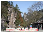 索道站建在后山下,我們乘索道下山后,索道站便有公車送至老磨灣(前山),準(zhǔn)備下一個(gè)游程.不過,如果時(shí)間稍微充足,我們還可以在索道站附近觀看金雞報(bào)曉、望郎峰、夫妻巖等景點(diǎn),現(xiàn)在我們還是去看看“夫妻巖”一景吧! |