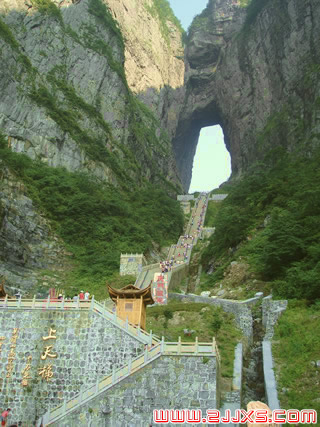 1999 年,世界特技飛行大師架機穿越天門洞,這一活動在全球引發(fā)轟動效應(yīng),收看現(xiàn)場直播的觀眾就達到 8 億之多,共計九百九十九級臺階的上天梯,是通達天門的途徑,也是許愿祈福的靈地。攀登上天梯,既是鍛煉意志,挑戰(zhàn)自我的過程,也是感悟人生歷程、脫俗超凡和豁朗心胸的過程。上天梯兩側(cè)五個休息平臺分別命名為“如意”、“青云”、“長生”、“琴瑟”、“有余”,寓意“福、祿、壽、禧、財”五福臨門的生活祈求和人生愿望,人們可在攀登的過程中祈福求愿,撒下對自己和親友的美好祝愿。歷經(jīng)艱辛,登上第九百九十九級臺階,跨過寓意“一步登天、心想事成”的“天門檻”,將有擺脫煩惱,心胸豁然開朗的心靈感悟。 |