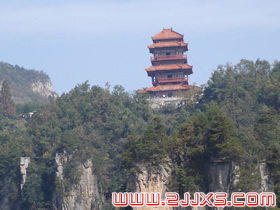 天子閣:這是六層四重檐穿頭式仿古建筑,高30米,由深圳市政府捐建。建立之初,本打算取名叫“深圳閣”,但遭到許多人(包括深圳人)反對,認(rèn)為這樣與整個(gè)天子山的風(fēng)景不是很協(xié)調(diào)。不過從另一個(gè)角度來看,深圳人這種“經(jīng)營城市”的意識,卻非常值得張家界人學(xué)習(xí)!坝F千里目,更上一層樓”,登樓遠(yuǎn)望,天子山群峰盡收眼底,別有一番風(fēng)景。