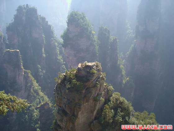 [后花園] 黃石寨有個(gè)前花園,這里有個(gè)后花園,傳說都是向王天子圍獵休閑的場所。這座園門,呈渾圓雙拱,就像古時(shí)候的那種滿月型園門了。加之這數(shù)十座石峰,小巧精致,點(diǎn)綴于從林之中;百鳥歌唱,溪澗淙淙,跟古時(shí)候大戶人家的后花園韻味兒差不多。