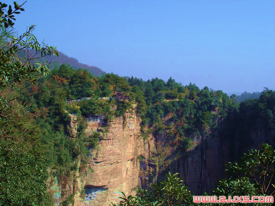 迷魂臺分兩級, 第一級比第二級高2 米, 面積約100 平方米。 第二級懸空橫伸, 可坐十幾個人。 在這里眺望, 高低錯落的石峰若斷若連;團團薄霧飄渺如煙, 群峰時隱時現(xiàn),令人難辨天上人間。迷魂臺是取這里風光奇絕,令人意亂神迷馳魂奪魄之意。站在石臺上遠望,黃石寨和腰子寨連成了一幅半弧形的山水畫;金鞭溪和畬刀溝若隱若現(xiàn);腳下山谷中,成團成簇的巖峰間,云繚霧繞,有時 彌漫成壯闊的江流,現(xiàn)出江上數(shù)峰青的奇異圖畫。 這時,就自然而然想起古人的句子:日暮鄉(xiāng)關(guān)何處是?煙波江上使人愁。愁的是魂靈迷失在這片奇山異水之間,找不到歸途了。