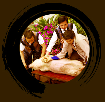 據(jù)說(shuō)有道行或有經(jīng)驗(yàn)的屠夫,可以根據(jù)年豬的血狀來(lái)斷定來(lái)年主戶家的禍福吉兇、財(cái)運(yùn)年成等,如宰殺的年豬血很少或無(wú)血,則預(yù)示著主戶家來(lái)年的財(cái)運(yùn)差,甚至要破財(cái);如豬血噴射較遠(yuǎn)且成火焰狀,則預(yù)示著來(lái)年主戶家應(yīng)防火災(zāi)或血光之災(zāi);如豬血暢旺且很有規(guī)律,血色鮮艷且多,無(wú)異狀,則預(yù)示著來(lái)年主戶家財(cái)運(yùn)好,收成好無(wú)災(zāi)難。 另外,殺年豬時(shí)主戶家的主婦是不能到場(chǎng)壩看殺豬的,說(shuō)是看了殺豬后來(lái)年就喂不好豬(稱為“不來(lái)豬”)。其主要原因可能是不忍心看宰殺年豬的場(chǎng)面,畢竟自己喂養(yǎng)的牲畜,朝夕相處,多少都有點(diǎn)感情罷了。 年豬殺死后,主戶家的婦女們就要端走豬血盆,灑上食鹽,讓其凝固,做成豬血豆腐。婦女們便忙著做飯燒菜,準(zhǔn)備招待接來(lái)吃“刨湯”的客人及屠夫,來(lái)吃“刨湯”的大多是女兒、女婿和摯友鄰居等;男人們就忙著刨毛清臟,屠夫則將年豬掛上釕環(huán)(專門掛豬肉的工具)后,把豬肉分成大小不等的肉塊,這時(shí)屠夫的工作就算完成了。將豬肉腌制上炕大多是婦女們的事,因?yàn)橛檬雏}腌肉打“紅鍋”有一套很繁雜的工序,腌制上炕后,經(jīng)過(guò)一段時(shí)間的煙熏烘烤便成了有名的“土家臘豬肉”了。最后就是吃飯喝酒,先把屠夫請(qǐng)到上席入座,再把吃“刨湯”的客人按輩分高低分別安排落座后,由主戶家男人(稱為當(dāng)家人)熱壺酌酒,婦女們就忙前跑后,端菜盛飯,熱情款待客人,客們則一邊吃喝,一邊聊家常,其樂(lè)融融。 |