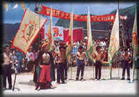 儺愿戲是從古代儺祭活動演化而來的一種原始宗教劇種。每年農(nóng)歷八月十五至臘月二十四日,鄉(xiāng)間驅(qū)除邪魔鬼魅、消除災(zāi)難厄運、慶賀人壽年豐時,請土老司若干人進(jìn)行表演。儺愿戲有高儺和低儺兩個流派。高儺流行于土家族、白族等少數(shù)民族地區(qū),低儺流行于當(dāng)?shù)貪h族地區(qū)。共同點都是敬奉“三元” ,“三元”即“三清”,指元始天尊、靈寶天尊、道德天尊,傳說是三個法力無邊的神仙。儺愿分儺戲(或儺舞)、儺技,儺戲有固定故事,有人物對白;儺技則是噴水畫符,雙腳趟燒得通紅的貫頭(鏵口),但見腳底冒煙,卻安然無恙。另外,咬鏵口、過火海(從炭火中過)、摸油鍋、滾榨刺、上刀梯等驚險功夫等,是一種難以理喻的“神秘文化”現(xiàn)象。 |