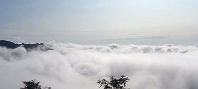 登舜峰絕頂觀云海,迎日出,因季節(jié)不同,景觀各異。春天,白云舒展,霧海茫茫,銀浪浮雕,千山百峰,時隱時現(xiàn);夏天,天高云淡,極目遠眺,萬山始于足下,千壑盡收眼底,似乎伸手可摘星攬月;秋天,遙看松濤托日,嬌陽冉冉,彤云煥彩,氣象萬千,美不勝收;冬天,放眼崇山峻嶺,千里冰封,萬里雪飄,玉樹銀花,滿目皆白,別有一番情趣。