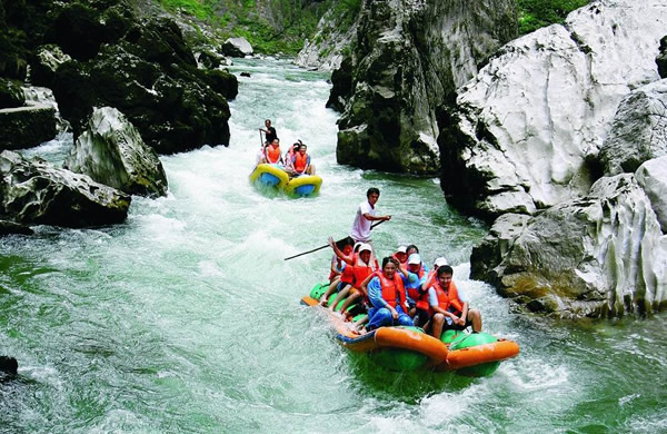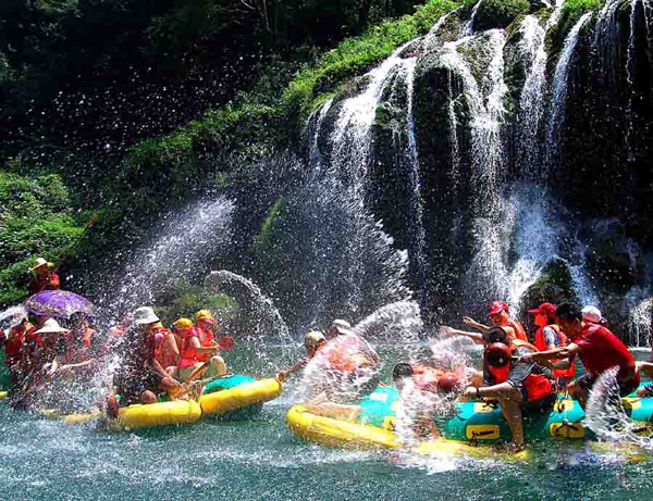 上午安排: 早餐后乘車約2小時(shí)抵達(dá)“天下第一漂”——【猛洞河】(門票168/人,已含),身著救身衣、乘皮舟、闖險(xiǎn)灘、博激流、沿途觀美景、沐瀑流、打水仗、過峽關(guān),出沒浪端谷底2個(gè)半小時(shí)。